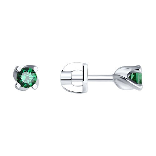 Серьги-пусеты из серебра с зелеными фианитами