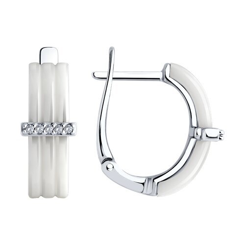 Серьги из серебра с керамическими вставками и фианитами