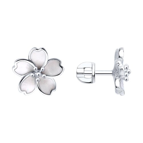 Белая эмаль, при определённом освещении даёт розоватый оттенок, винтовая застежка. Смотрятся красиво. Без подарочной упаковки.