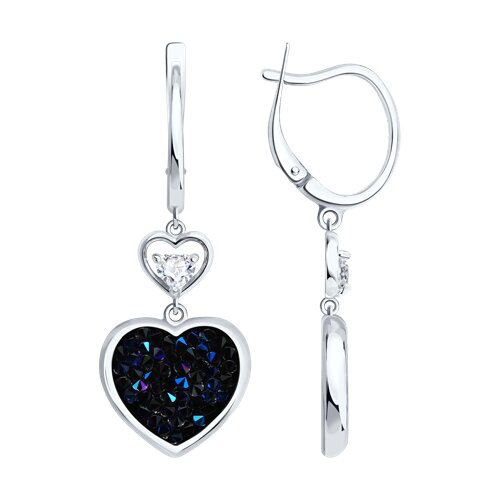 Серьги из серебра с кристальной тканью и фианитами