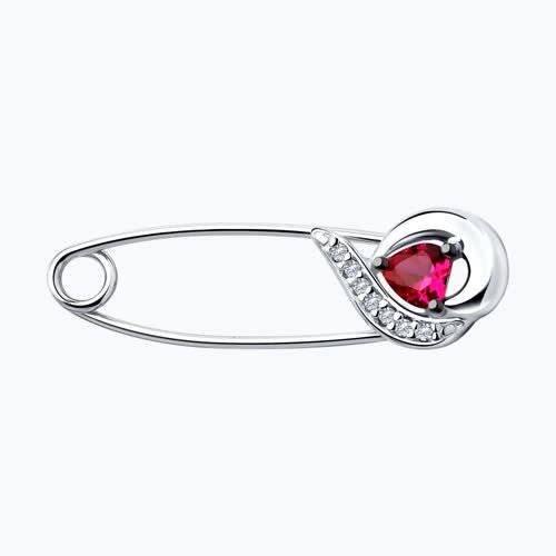 Брошь из серебра с бесцветными и красным фианитами