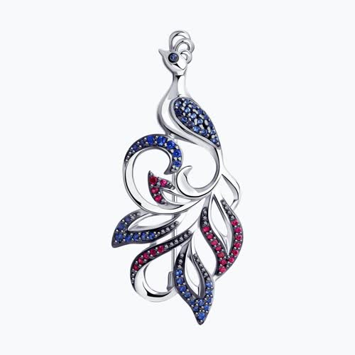Брошь из серебра с красными и синими фианитами