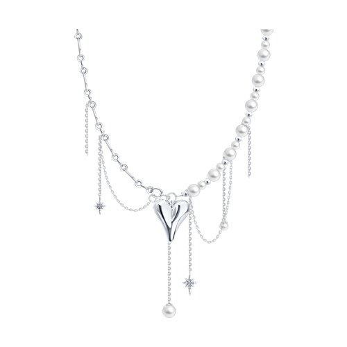 Колье из серебра с синтетическим жемчугом и фианитами