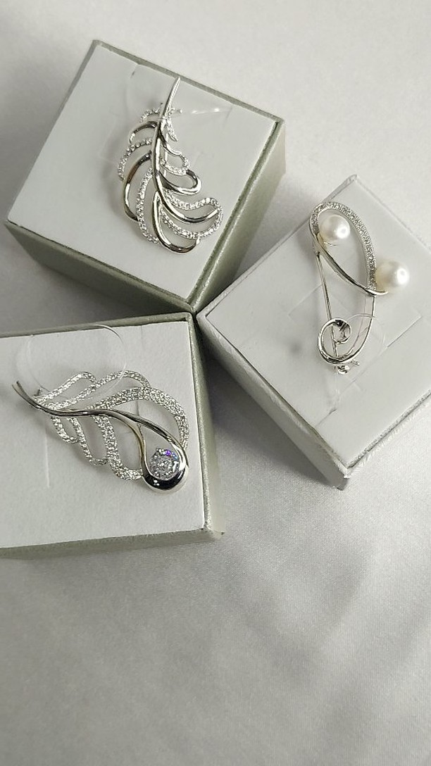 Серебряная брошь в форме листа 925 пробы с фианитами