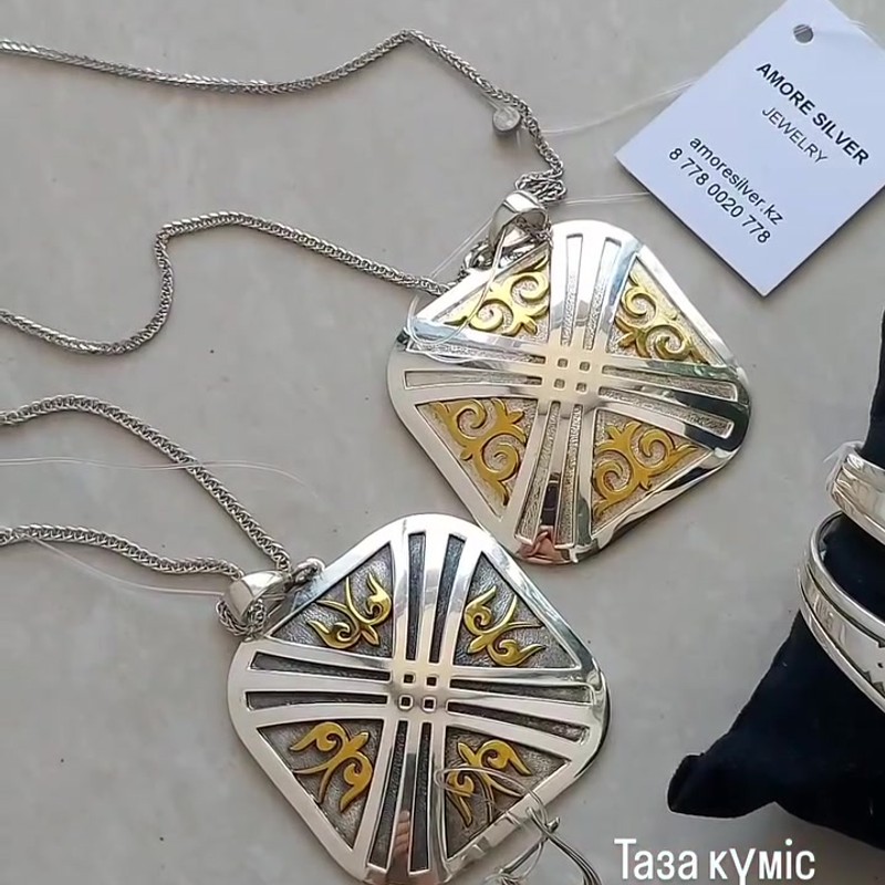 Серебряная цепочка с квадратной подвеской в национальном стиле 925 пробы