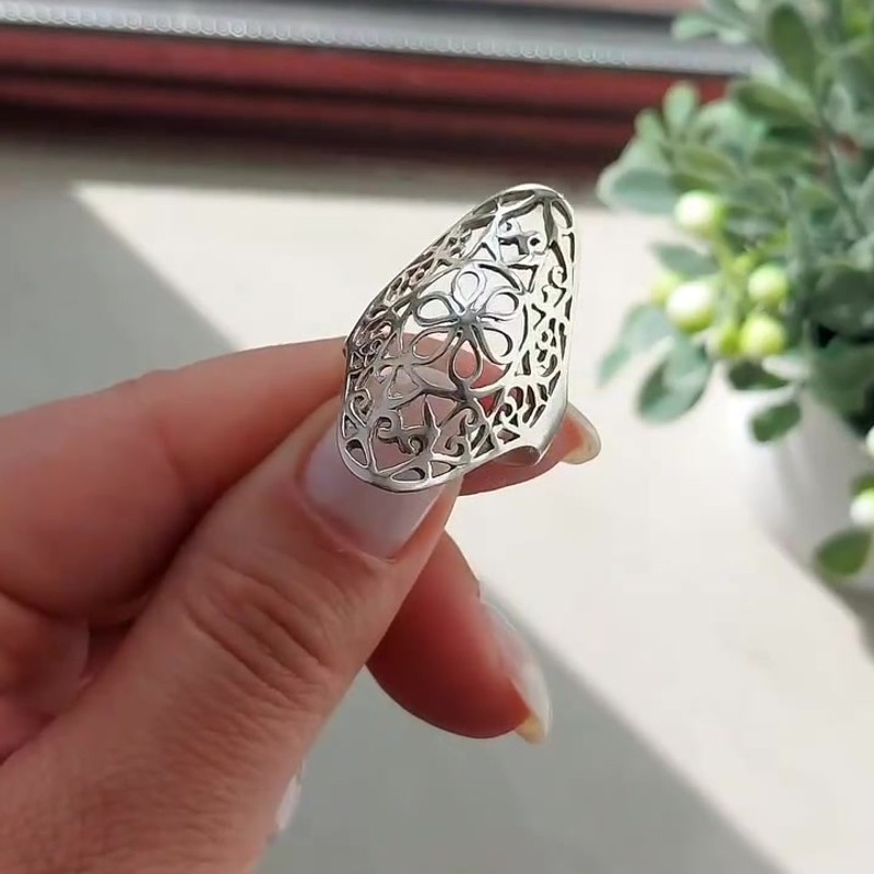 Серебряное кольцо 925 пробы с ажурным цветочным узором