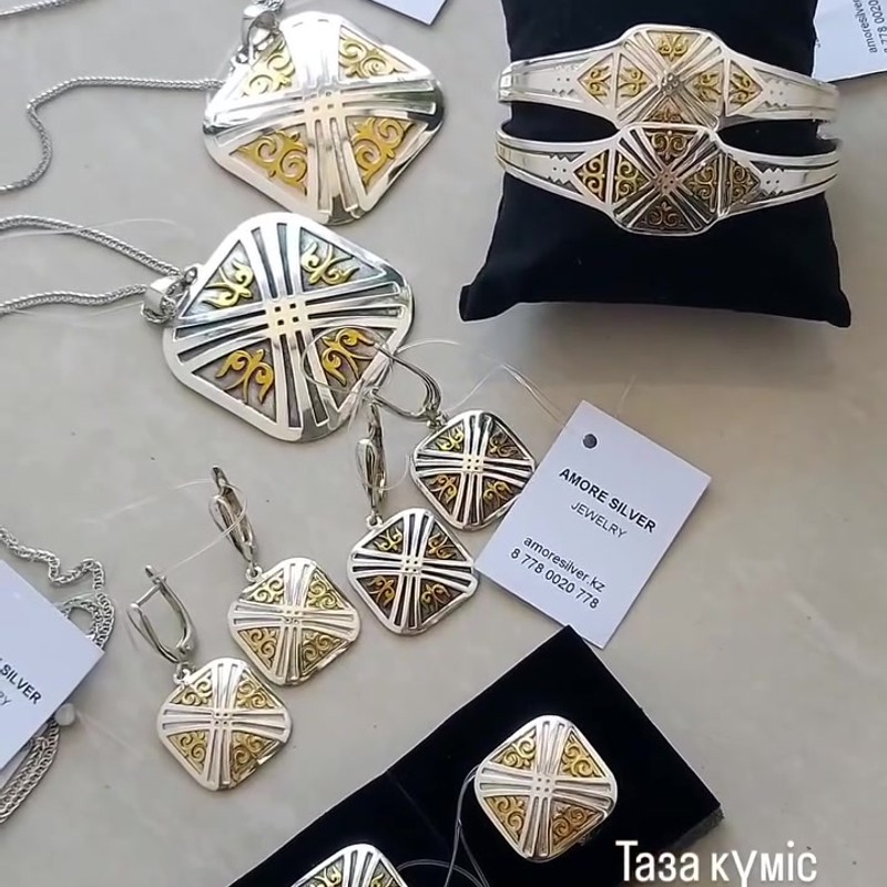Серебряное кольцо 925 пробы с позолотой и символом Шанырақ